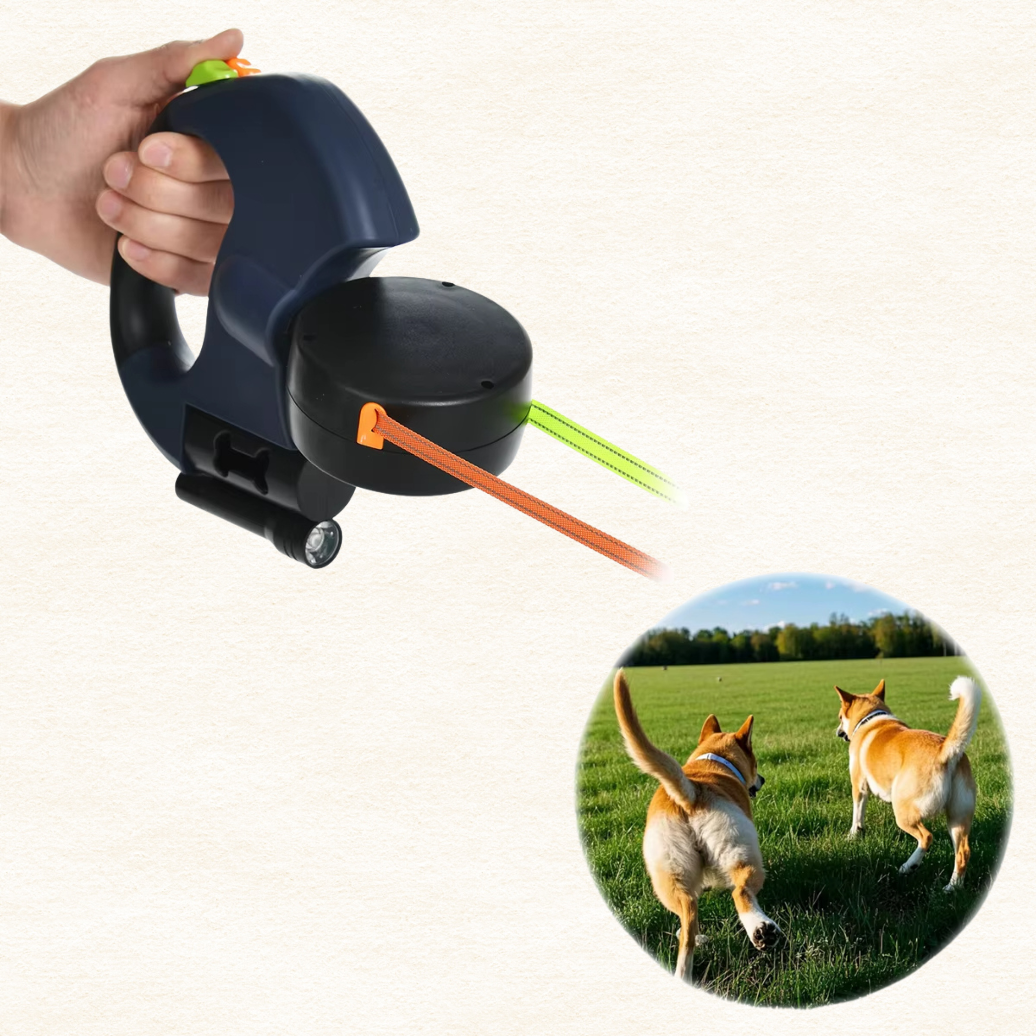 Die einziehbare Leinenfunktion erlaubt deinem Hund bis zu 3 Meter Bewegungsfreiheit, während du die volle Kontrolle behältst.