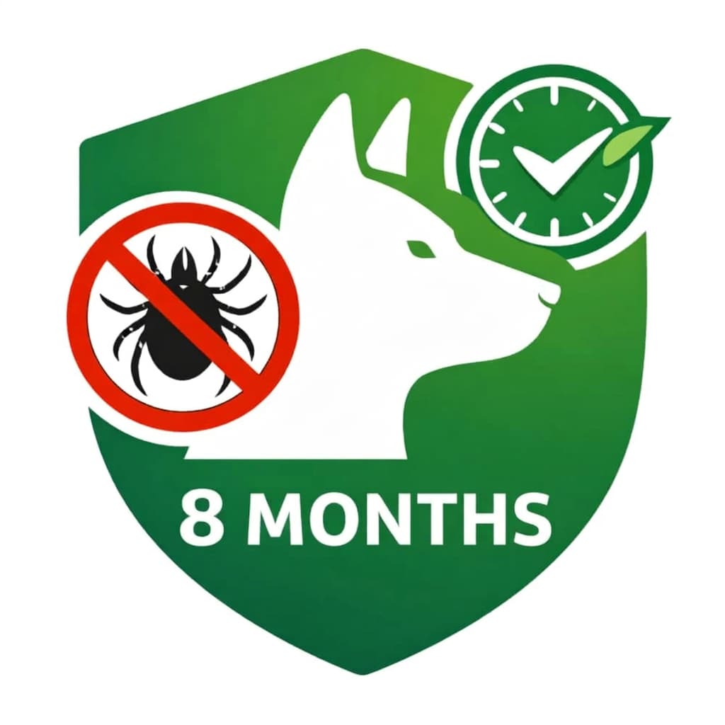 The collar’s protective effect lasts up to 8 months, as the natural active ingredients are released continuously.