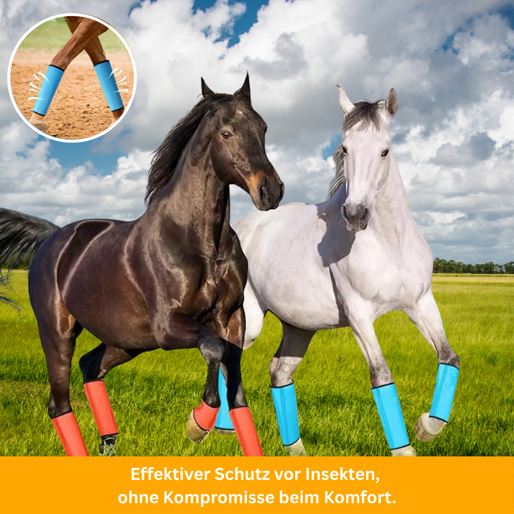 FlyGuard Fliegenstiefel schützen dein Pferd vor Mücken, Fliegen und stechenden Insekten – sie reduzieren Reizungen, verhindern Hufabschürfungen, Gelenkentzündungen und Muskelermüdung für mehr Komfort und Schutz.
