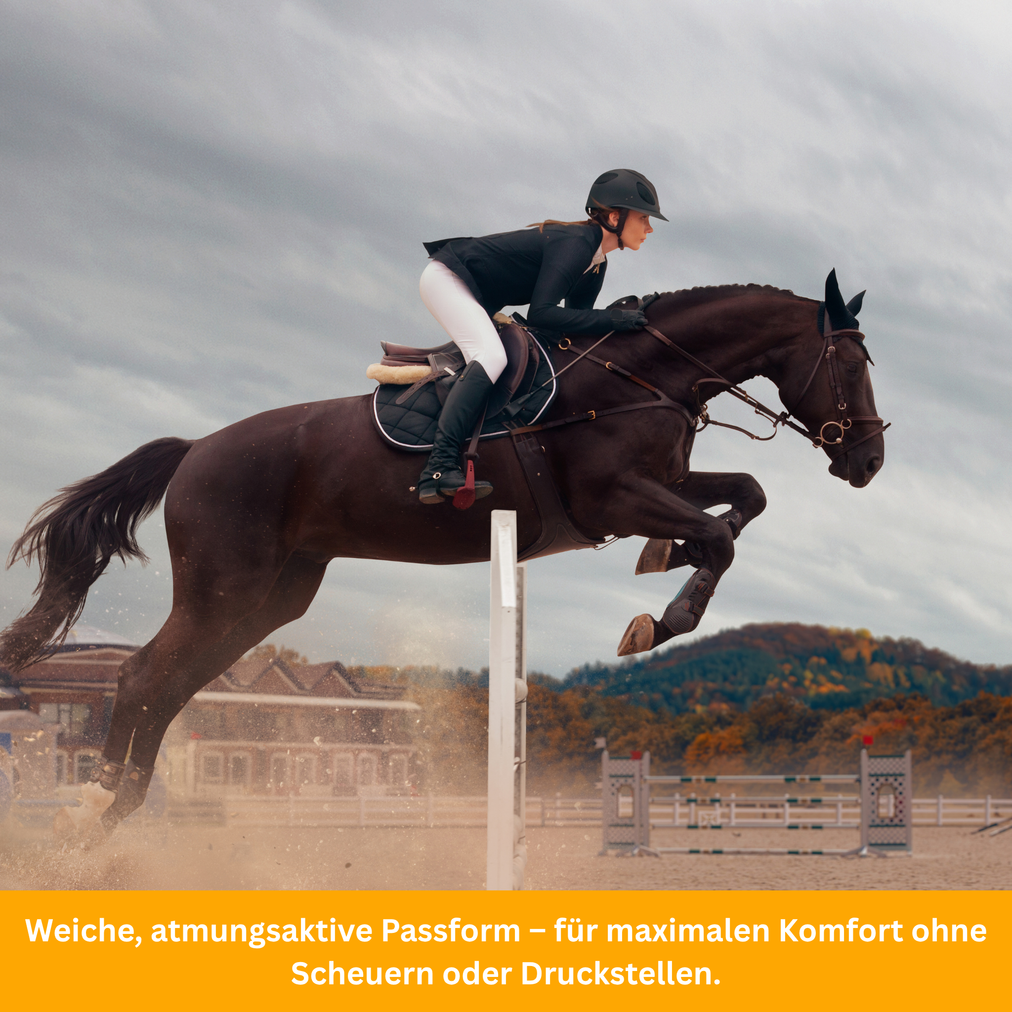 Ob auf dem Reitplatz oder im Gelände – dein Pferd ist rundum geschützt.